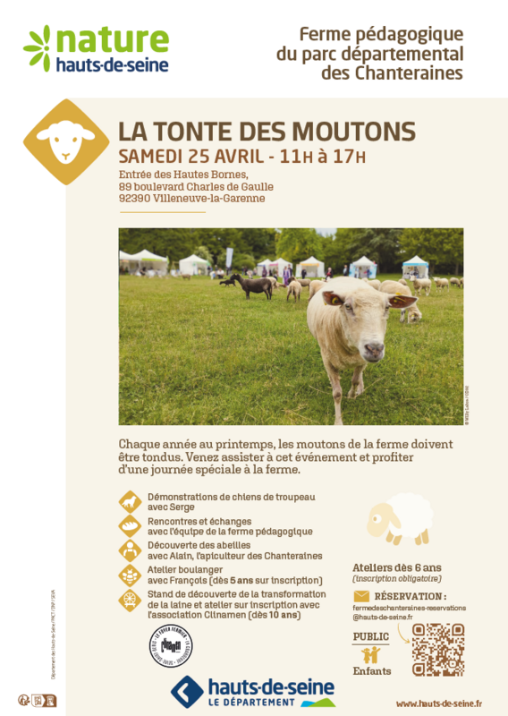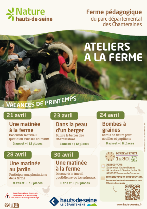 Pour réserver les ateliers pédagogiques de la ferme : fermedeschanteraines-reservations@hauts-de-seine.fr