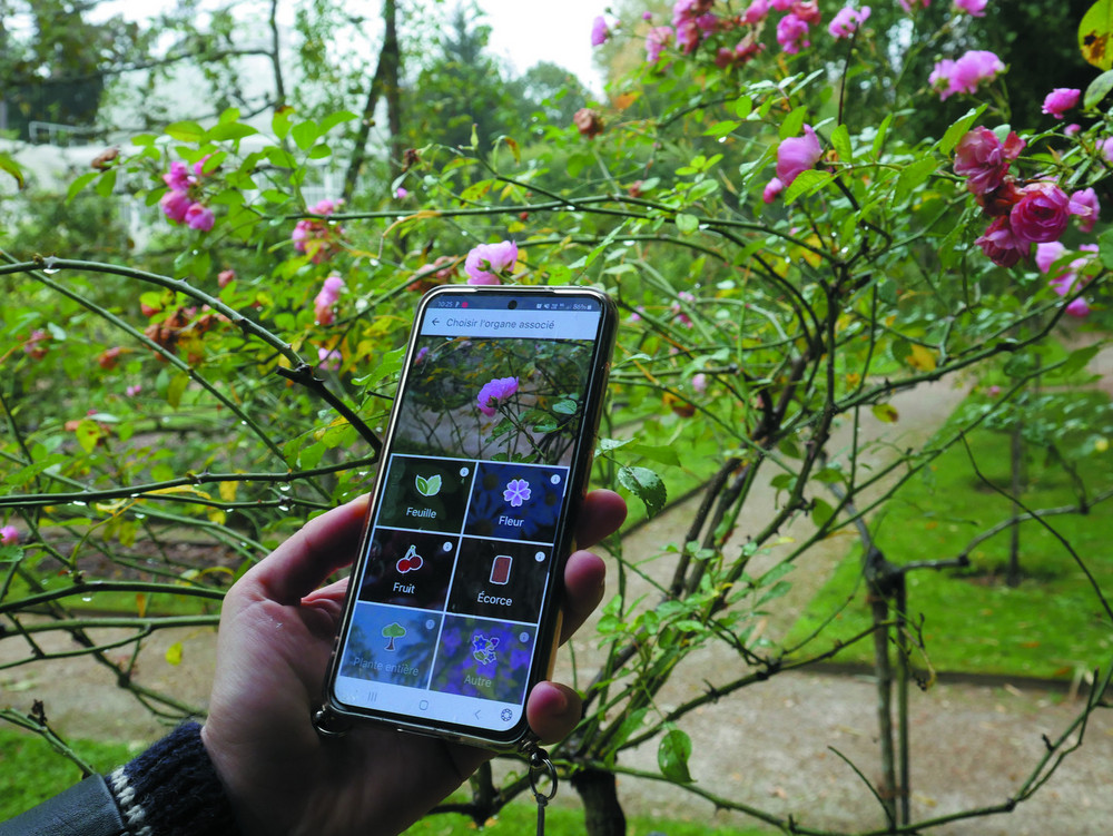 Munis de l’application Pl@ntnet, les participants identifient les plantes remarquables du jardin et apprennent des rudiments de botanique.