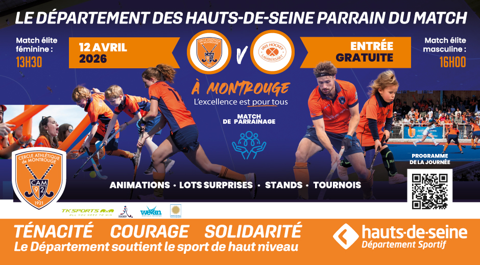 Actuellement 3e et 5e au classement du championnat de France Elite, les équipes masculine et féminine du CAM 92, le club de hockey sur gazon des Hauts-de-Seine, s’apprêtent à vivre une 14e journée de championnat pas comme les autres. Les deux rencontres sont en effet parrainées par le Département des Hauts-de-Seine et placées sous le signe de valeurs sportives qui leur sont communes : inclusion, solidarité et excellence.