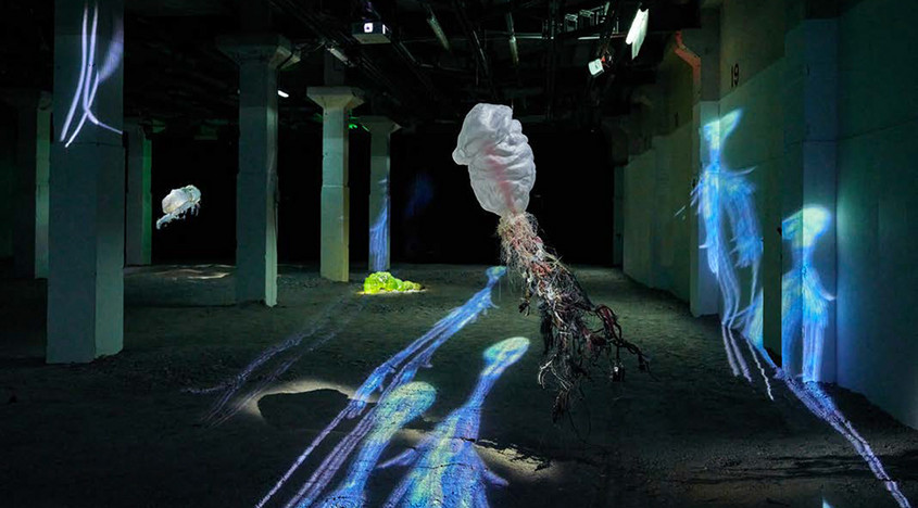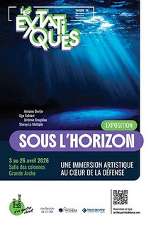 Premier rendez-vous, l’exposition "Sous l’Horizon", du 3 au 26 avril 2026, invite à une immersion dans les mondes invisibles de l’océan, dans un espace de 1000 mètres carrés, habituellement non accessible au public, situé sous la Grande Arche. Équipés d’un casque audio et d’une lampe torche, les visiteurs traversent un parcours sensoriel mêlant art, science et fiction.